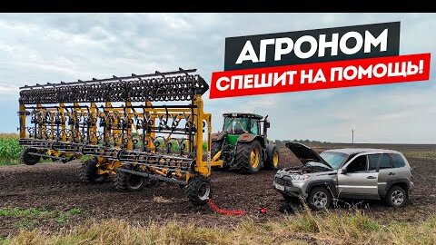 🚜Прокол колеса в поле. Как настроить этот культиватор на работу!? Работа на John Deere 8335r.