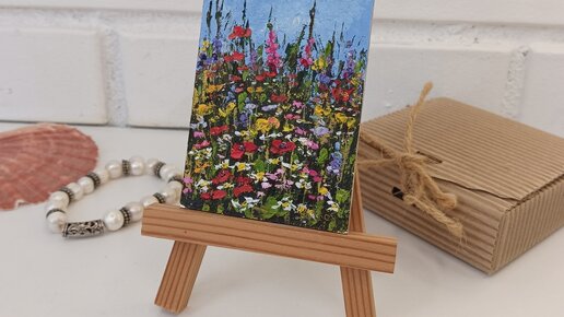 ACEO миниатюра картина маслом полевые цветы ромашки маки люпины лютики. Идеи для подарков.