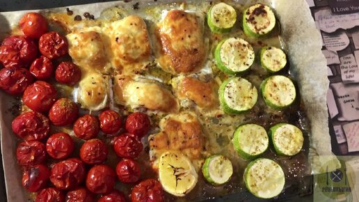 Сочная рыбка под сыром, а на гарнир овощи. Быстрый ужин на одном противне!