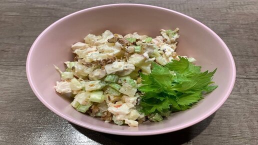 Салат "Вальдорф" с курицей, сельдереем и ананасами. Приготовила на ужин для своей семьи