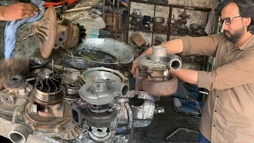 Это настоящий механик за работой, восстанавливающий турбокомпрессор __ Турбокомпрессор выходит из строя из-за плохой смазки