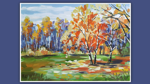 Рисуем осень гуашью. Простой осенний пейзаж. Уроки рисования