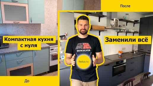 Компактная кухня с нуля. Замена фасадов, столешницы, корпусов и фурнитуры. Faslux.ru
