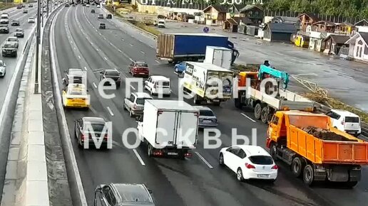 На 64-м километре внешней стороне МКАД грузовой автомобиль наехал на дорожное ограждение