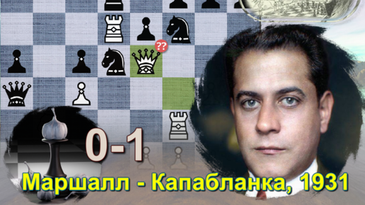 Эпичные передряги Фрэнка Маршалла (белые) завершились уверенным и жестоким матом от Капабланки в Нью-Йорке, 1931 - покажу эти "красные ходы"