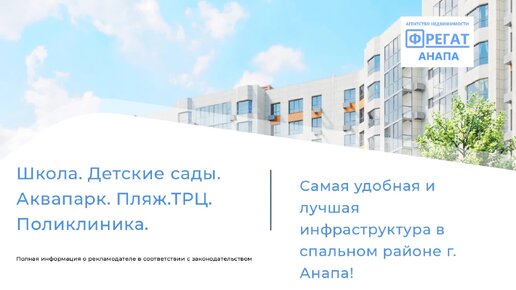 Анапа. Новые квартиры у моря. (АН ФРЕГАТ). Ипотека от 0,2%. Акции и скидки от застройщика. Центр города. До моря 700 метров.