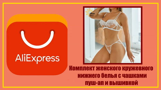 AliExpress. Комплект женского кружевного нижнего белья с чашками пуш-ап и вышивкой.