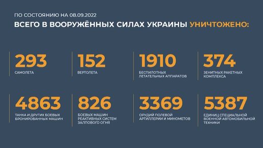 Сводка МО РФ о ходе проведения специальной военной операции на территории Украины на 08.09.2022 г.