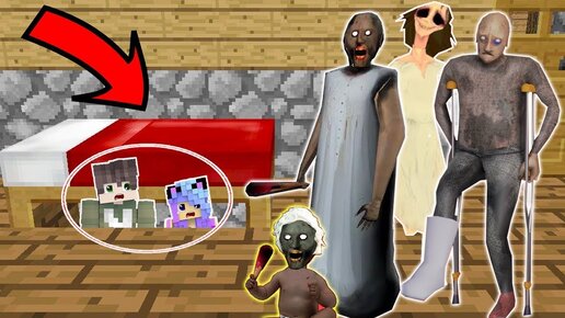 ПРЯЧУСЬ ПОД КРОВАТЬЮ ОТ СЕМЬЯ БАБКИ ГРЕННИ В МАЙНКРАФТ GRANNY 3 MINECRAFT