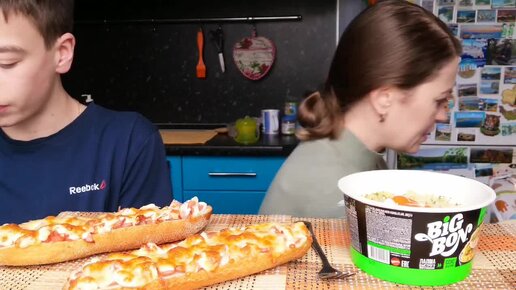 МУКБАНГ БАГЕТ С НАЧИНКОЙ_ЛАПША БИГ БОН