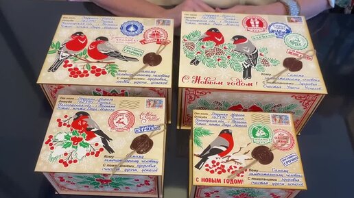 Посылка от Деда Мороза Снегири - сладкий детский Новогодний подарок в упаковке из фанеры