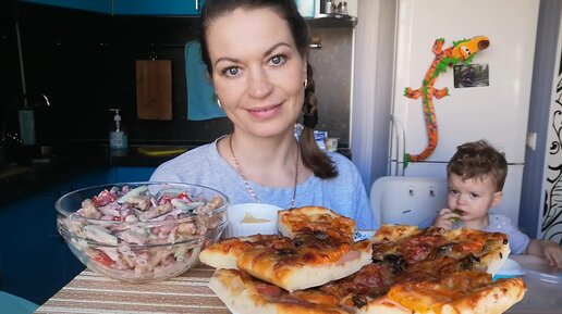 МУКБАНГ ДОМАШНЯЯ ПИЦЦА😋, САЛАТ "СКАЗКА" 😉😊/MUKBANG