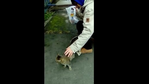 Любитель кошек. Ни одну не пропустит. Всех погладит
