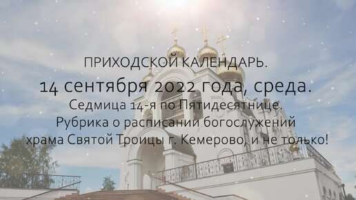 ЖИВОЙ КАЛЕНДАРЬ. 14 сентября 2022 года, среда. Седмица 14-я по Пятидесятнице.