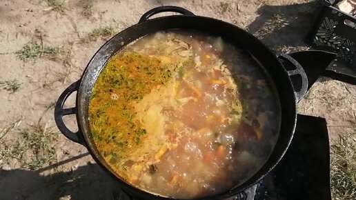 Суп с баклажанами в казане на костре