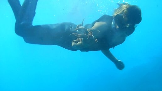 Осьминог🐙 пытается удрать от ныряльщика, выпуская чернила