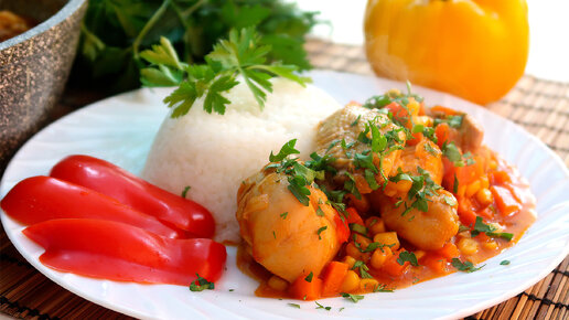 Курица по мексикански с овощами и консервированной кукурузой