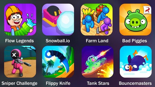 Flow Legends, Snowball.io, Farm Land, Bad Piggies, Sniper Challenge, Flippy Knife, Tank Stars