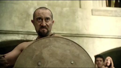 Гладиатор бьется с закрытыми глазами. Сцена боя из сериала "Спартак: Боги арены"