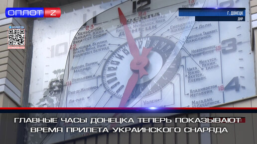 Главные часы Донецка теперь показывают время прилёта украинского снаряда