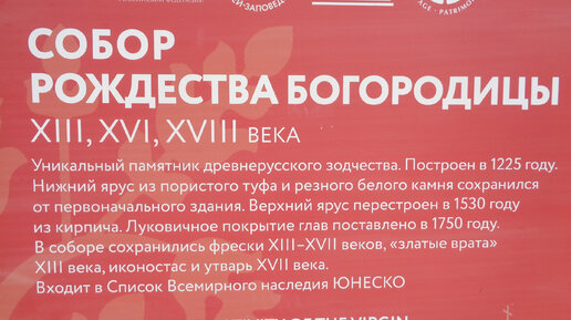 Один из древнейших белокаменных храмов Руси - собор Рождества Богородицы в Суздале