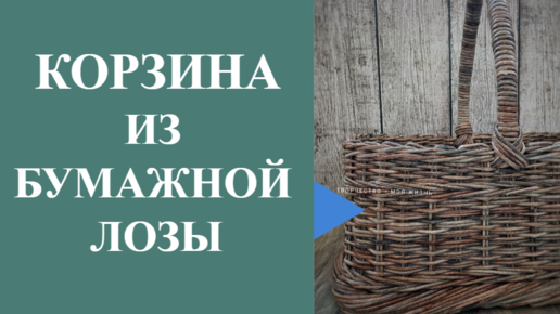 Грибная корзина из бумажной лозы. Плетение прямой и обратной веревочки, ситец в две и одну трубочку и простая загибка