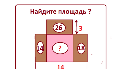Геометрическая задача. Найти площадь розового прямоугольника по данным чертежа