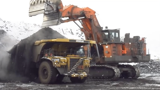 Погрузка в карьере самосвала Caterpillar 793f грузоподъёмностью 200 тонн!