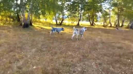 Алабаи Рафаэлла и Раптор на прогулке в осеннем лесу