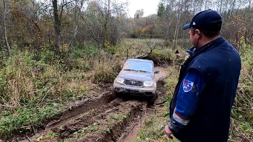 УАЗик в РОДНОЙ СТИХИИ. Очень глубокая колея ему не страшна.