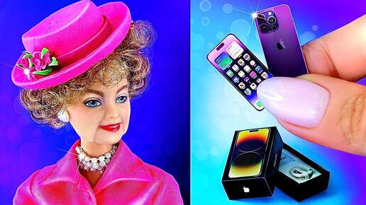 Распаковка миниатюрного iPhone 14, шапочка для куклы Барби Элизабет II и еще 16 идей для кукол