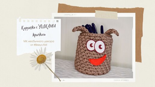 🐶 Делаем из корзинки МОРДОЧКУ СОБАЧКИ с ушками крючком / Как необычно украсить ВЯЗАНУЮ корзинку / Бесплатный МК ВяжусАм