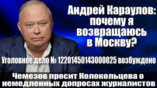 Андрей Караулов: почему я возвращаюсь в Москву? Уголовное дело №12201450143000025 возбуждено