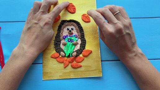 Осенняя поделка. Лепим ежика из воздушного пластилина.