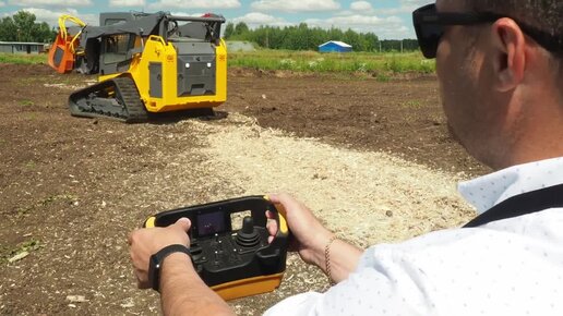 Дерево - в щепки. Российский гусеничный погрузчик с мульчером на дистанционном управлении