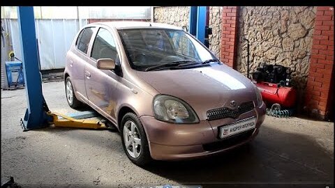 Замена картриджа задней подушки ДВС на Toyota Vitz Тойота Витц SCP10 2000 года