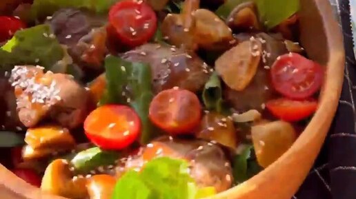 Теплый салат с куриной печенью и шикарной заправкой