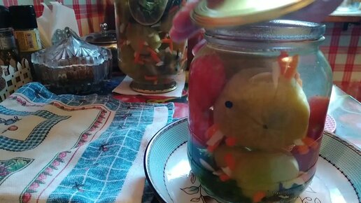 ПОМИДОРЫ,, ЁЖИКИ,, ЗЕЛЁНЫЕ ПОМИДОРЫ НАЧИНЁННЫЕ ЧЕСНОКОМ И МОРКОВЬЮ, консервированные на зиму.
