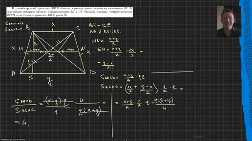 В равнобедренной трапеции ABCD боковые стороны равны меньшему основанию BC. К диагоналям трапеции провели перпендикуляры BH и CE...