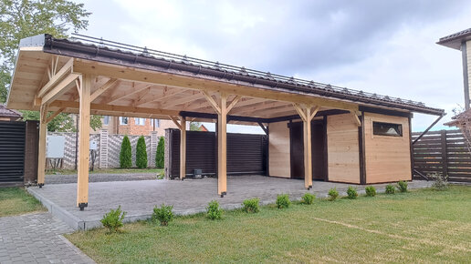 Навес на ДВА авто с хозблоком