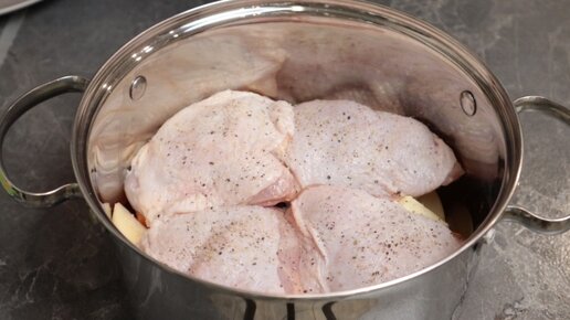 Ужин в одной кастрюле без хлопот и грязной посуды, просто всё нарезал и поставил на плиту. Тушёная курица с овощами. Рецепт