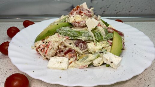 Идеальный салат за несколько минут! Салат с крабовыми палочками и греческим сыром.