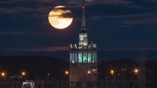 Фотограф Валерий Козубовский запечатлел восхождение полной луны над Пермью. Получилось завораживающе видео