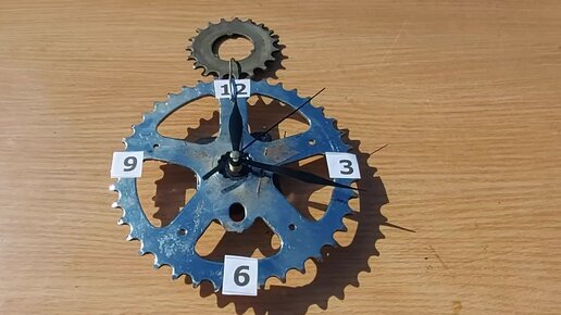 Из двух шестерёнок от велосипеда сделал самоделку своими руками. Получились настенные часы.