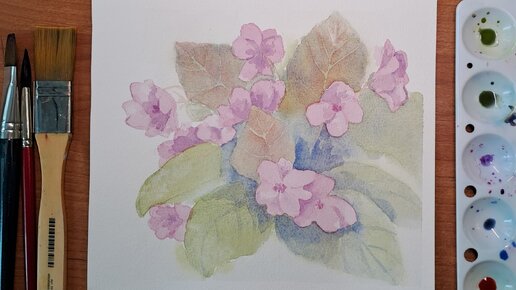 Рисуем фиалки акварелью.