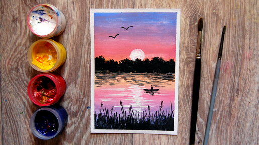 Как нарисовать закат гуашью