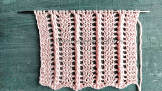 Красивейший ажурный узор с объемными вертикальными линиями для вязания палантинов, шарфов, кардиганов