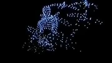 РЖЕВСКИЙ МЕМОРИАЛ. Световое шоу сотни дронов взмыли вверх иметирующие улетающих журавлей.