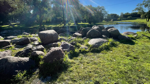 Сад камней на реке ПсковА, раннее утро и начало осени