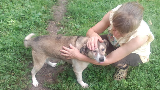 Начали с котиков в ямке, закончили общение с песиком -слепышом, у которого, как оказалось, кличка Тузик...из погорельцев он